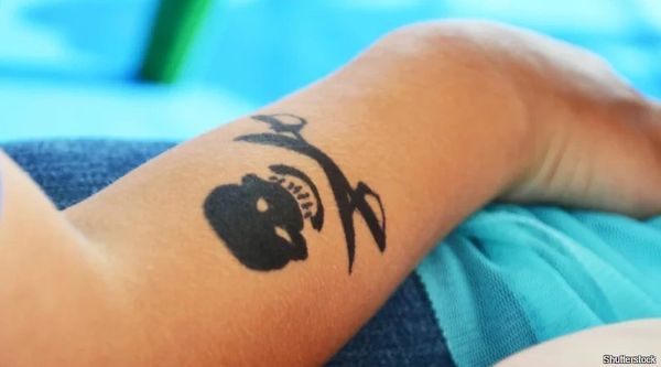 You were just starting to relax about the whole taking candy, granola bars, and bags of popcorn from evil old lady's thing, so now let's talk about those tattoos. You remember the tattoos — first it was blue stars, then it was Bart Simpson.