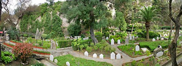 The Trafalgar Cemetery is in Gibraltar, the British Overseas Territory at the southern end of the Iberian Peninsula. It is a triangular parcel of land whose boundaries are formed by the Charles V Wall to the north, Prince Edward's Road to the east, and Trafalgar Road to the southwest. Prince Edward's Gate is at the northeast corner of the cemetery; the Southport Gates are at the northwest corner.