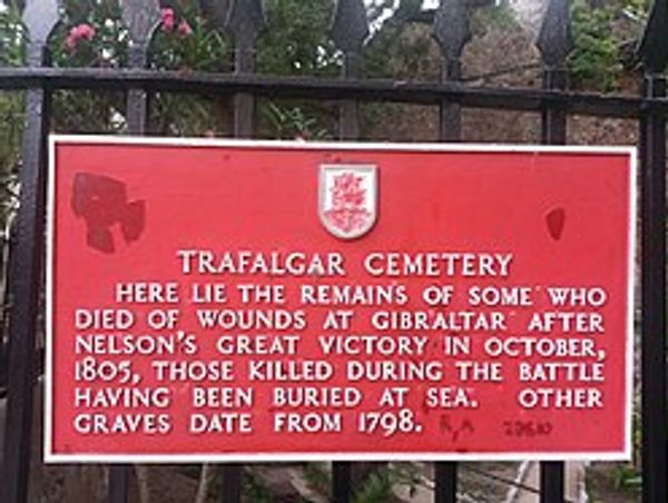 The Trafalgar Cemetery is a cemetery in the British Overseas Territory of Gibraltar. Formerly known as the Southport Ditch Cemetery, it occupies a small area of land just to the south of the city walls, in what had been a defensive ditch during the period of Spanish rule of Gibraltar. Although it is named for the Battle of Trafalgar of 21 October 1805, only two victims of the battle are buried there. The remainder of the interments are mostly of those killed in other sea battles or casualties of the yellow fever epidemics that swept Gibraltar between 1804 and 1814. In addition, tombstones were transferred to the Trafalgar Cemetery from St. Jago's Cemetery and Alameda Gardens.
